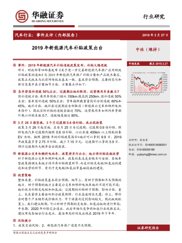 【华融证券】【20190327】2019年新能源汽车补贴政策出台-5页