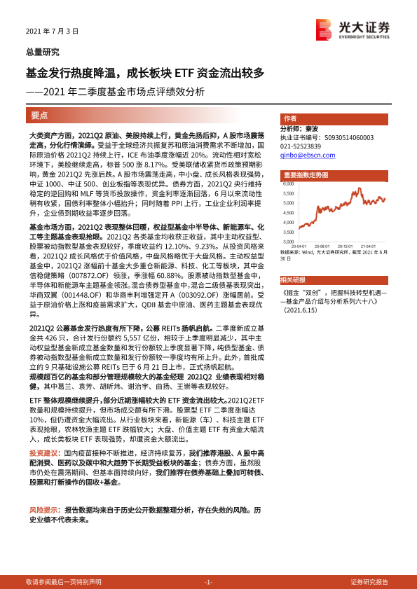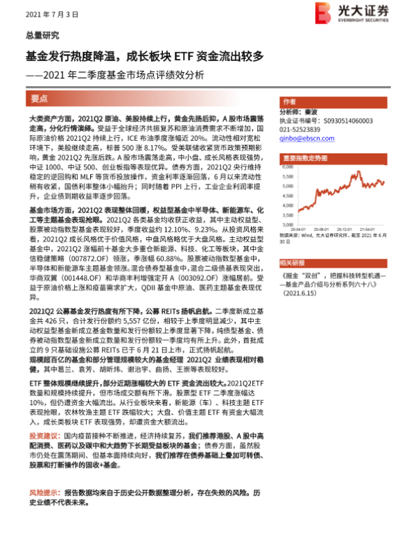 【光大证券】【20210703】2021年二季度基金市场点评绩效分析:基金发行热度降温,成长板块ETF资金流出较多-24页