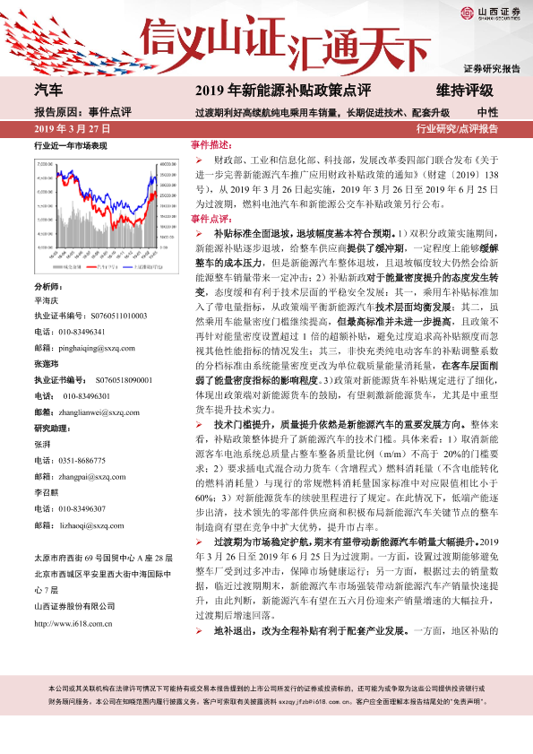 【山西证券】【20190327】2019年新能源补贴政策点评-过渡期利好高续航纯电乘用车销量,长期促进技术、配套升级-11页