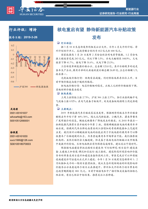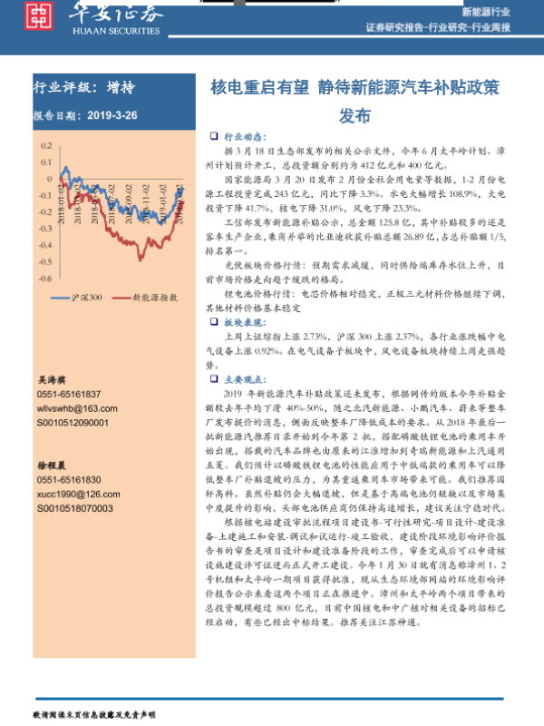 【华安证券】【20190326】20190326-华安证券-新能源行业周报:核电重启有望 静待新能源汽车补贴政策发布-10页