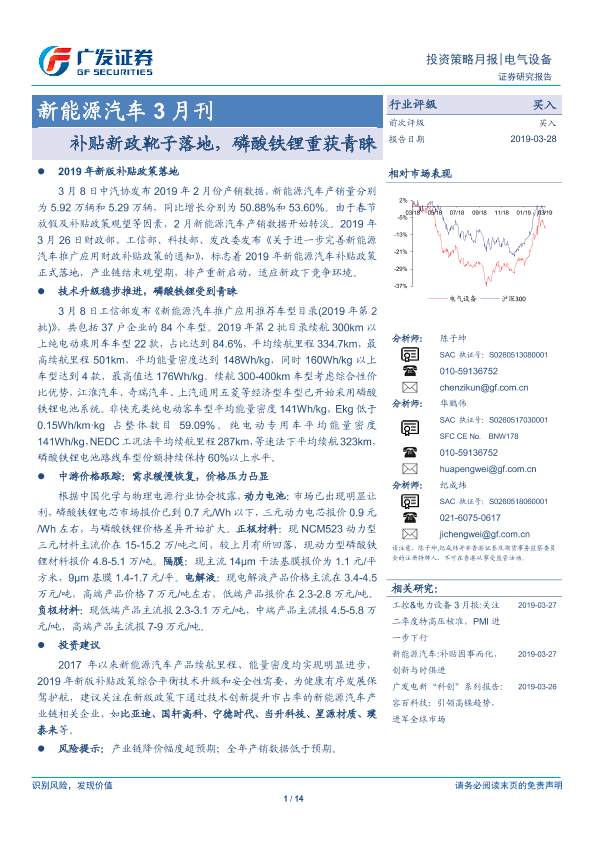 【广发证券】【20190328】20190328-广发证券-新能源汽车3月刊:补贴新政靴子落地,磷酸铁锂重获青睐-14页
