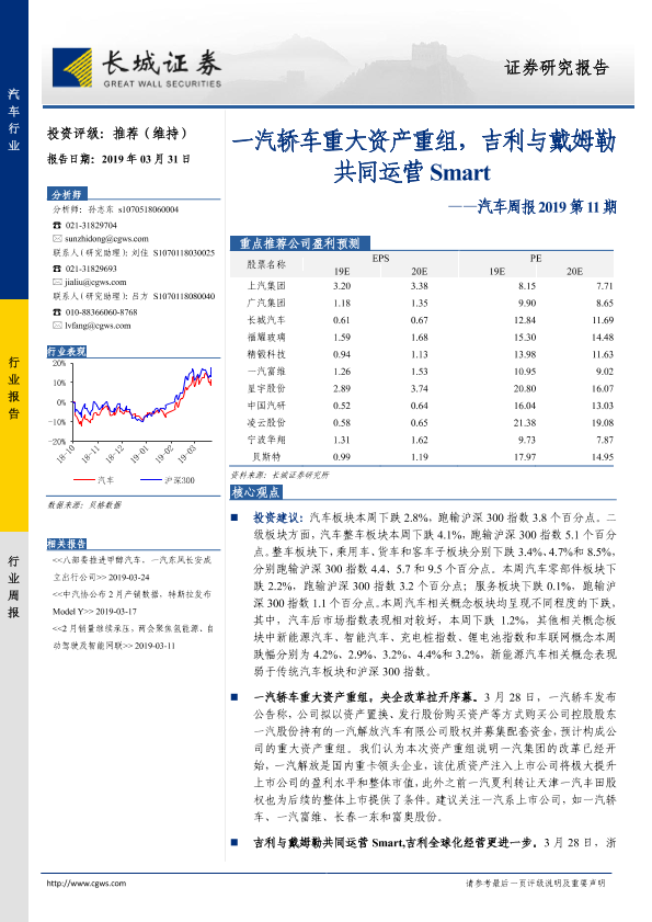 【长城证券】【20190331】汽车周报2019第11期:汽轿车重大资产重组,吉利与戴姆勒共同运营Smart-15页