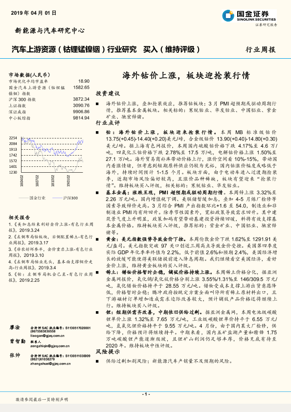【国金证券】【20190401】20190401-国金证券-汽车上游资源(钴锂锰镍铟)行业研究周报:海外钴价上涨,板块迎抢装行情-9页