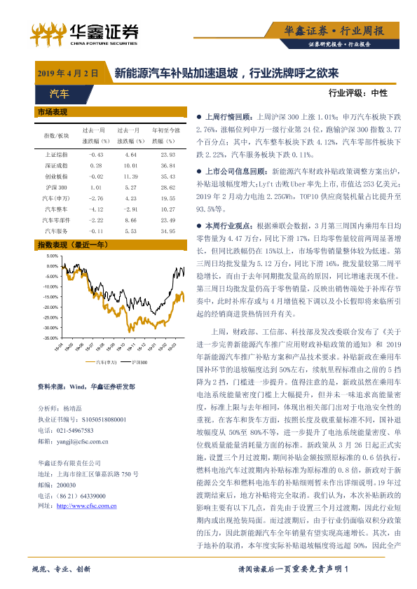 【华鑫证券】【20190402】20190402-华鑫证券-汽车行业周报:新能源汽车补贴加速退坡,行业洗牌呼之欲来-21页