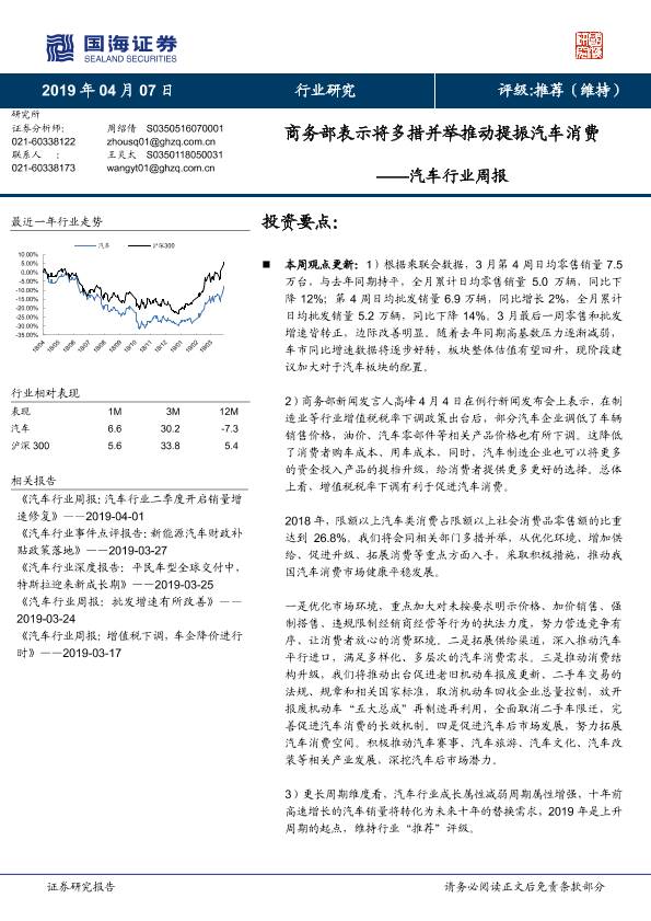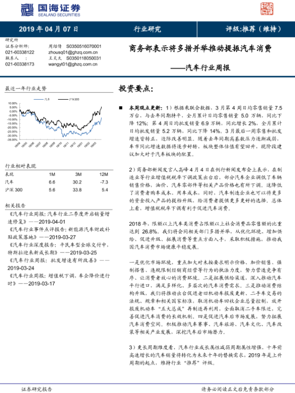 【国海证券】【20190407】汽车行业周报:商务部表示将多措并举推动提振汽车消费-25页