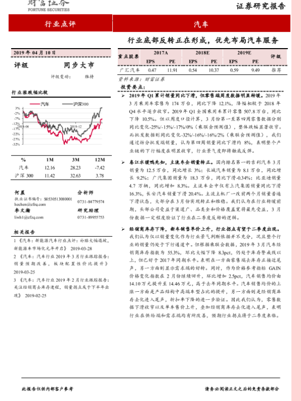 【财信证券】【20190410】20190410-财信证券-汽车行业点评:行业底部反转正在形成,优先布局汽车服务-3页