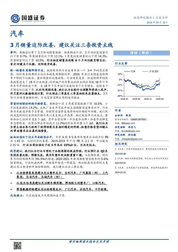 【国盛证券】【20190410】20190410-国盛证券-汽车行业点评:3月销量边际改善,建议关注三条投资主线-6页