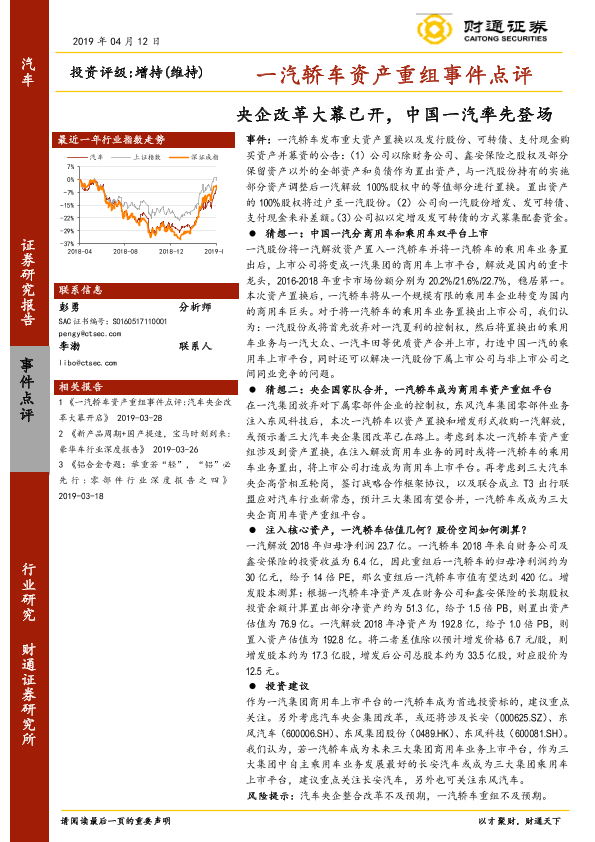 【财通证券】【20190412】一汽轿车资产重组事件点评:央企改革大幕已开,中国一汽率先登场-5页