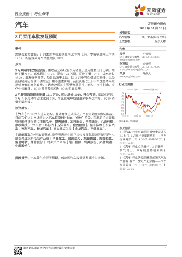 【天风证券】【20190410】20190410-天风证券-汽车行业点评:3月乘用车批发超预期-10页