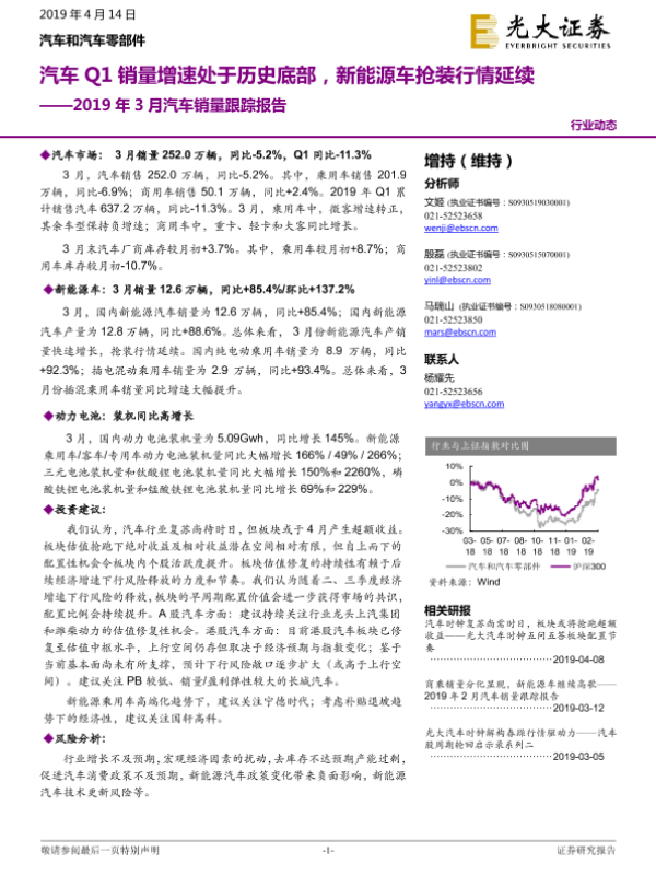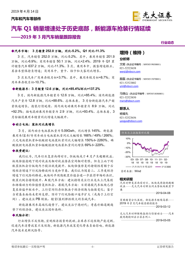 【光大证券】【20190414】2019年3月汽车销量跟踪报告:汽车Q1销量增速处于历史底部,新能源车抢装行情延续-16页