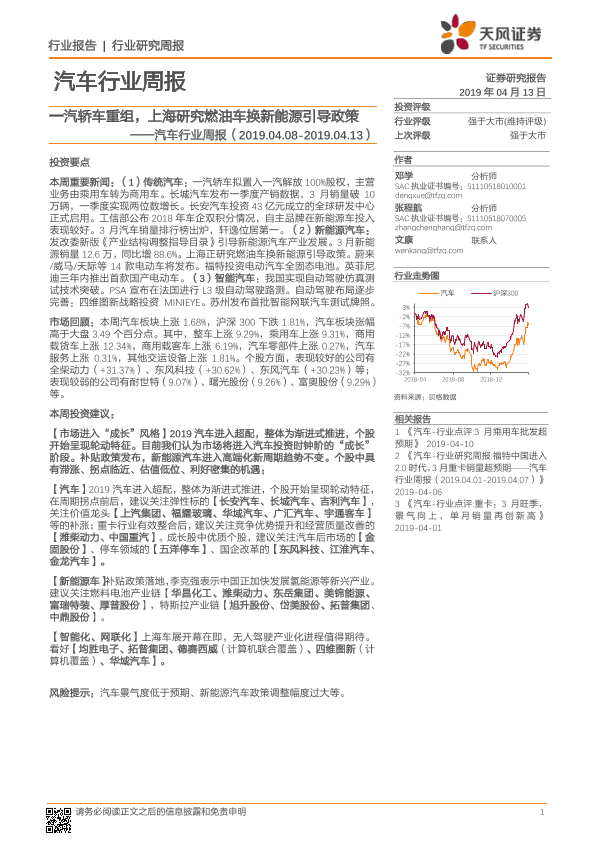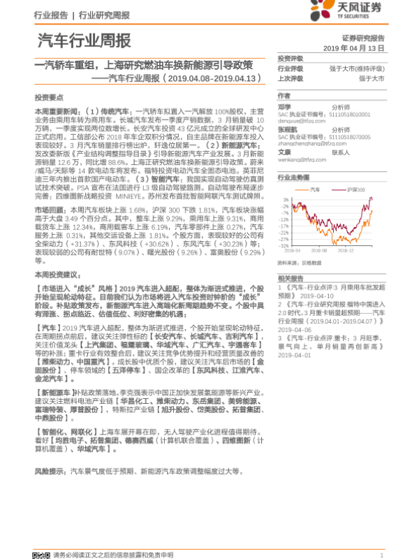 【天风证券】【20190413】20190413-天风证券-汽车行业周报:一汽轿车重组,上海研究燃油车换新能源引导政策-26页