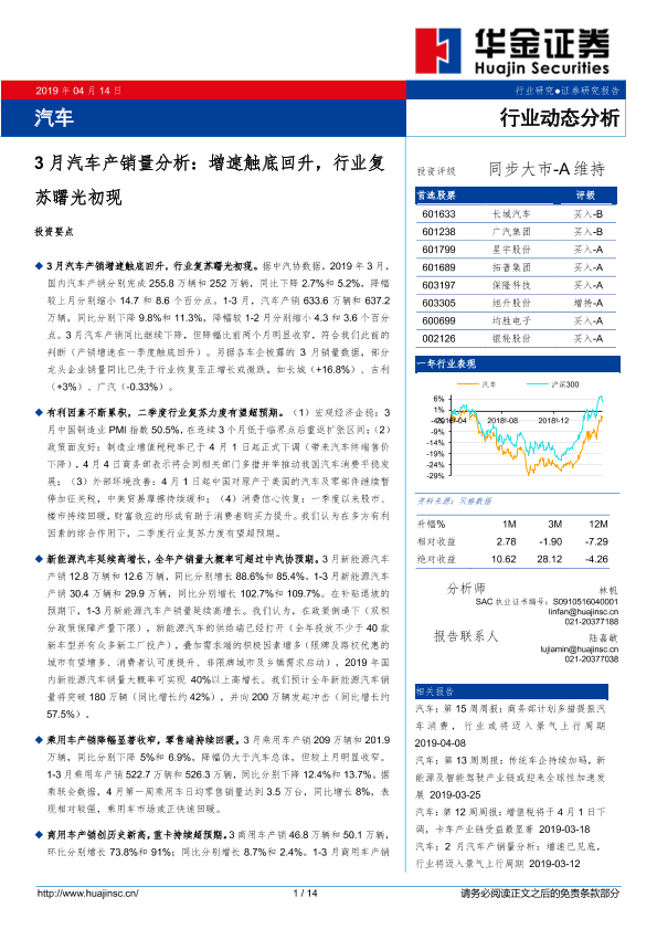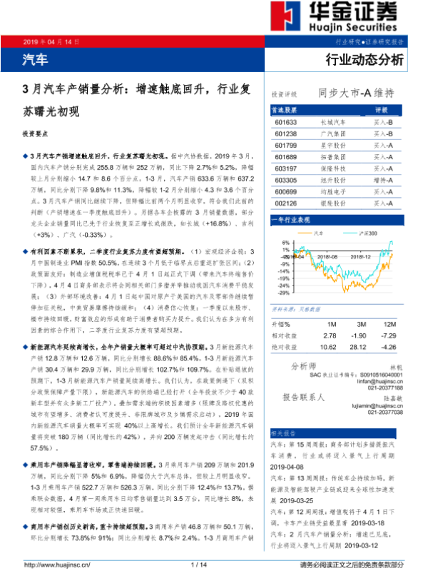 【华金证券】【20190414】3月汽车产销量分析:增速触底回升,行业复苏曙光初现-14页