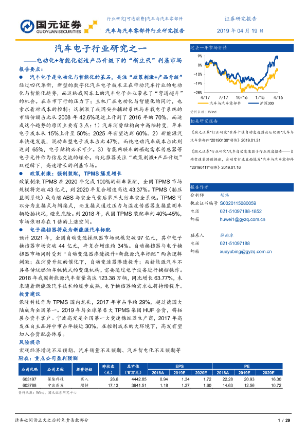 【国元证券】【20190419】汽车电子行业研究之一:电动化+智能化创造产品升级下的“新生代”利基市场-29页