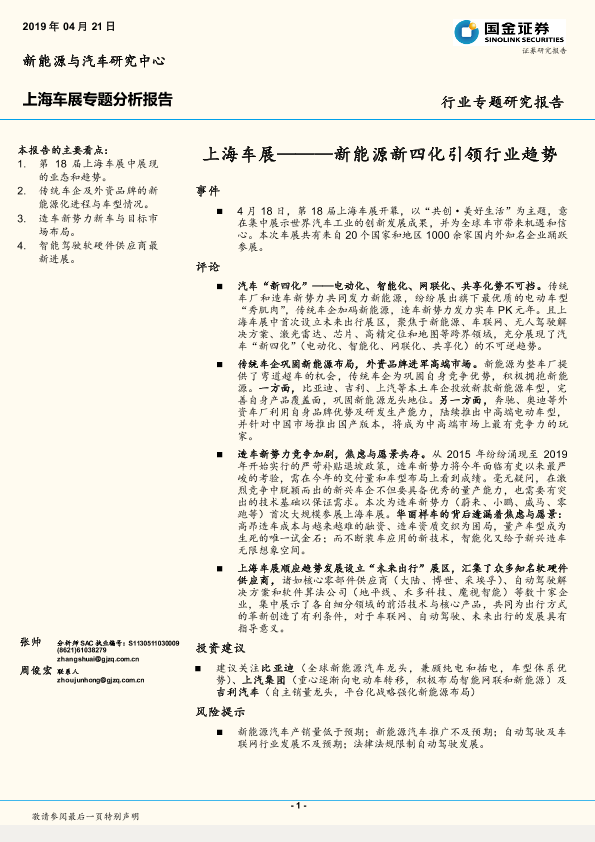【国金证券】【20190421】上海车展专题分析报告:新能源新四化引领行业趋势-15页