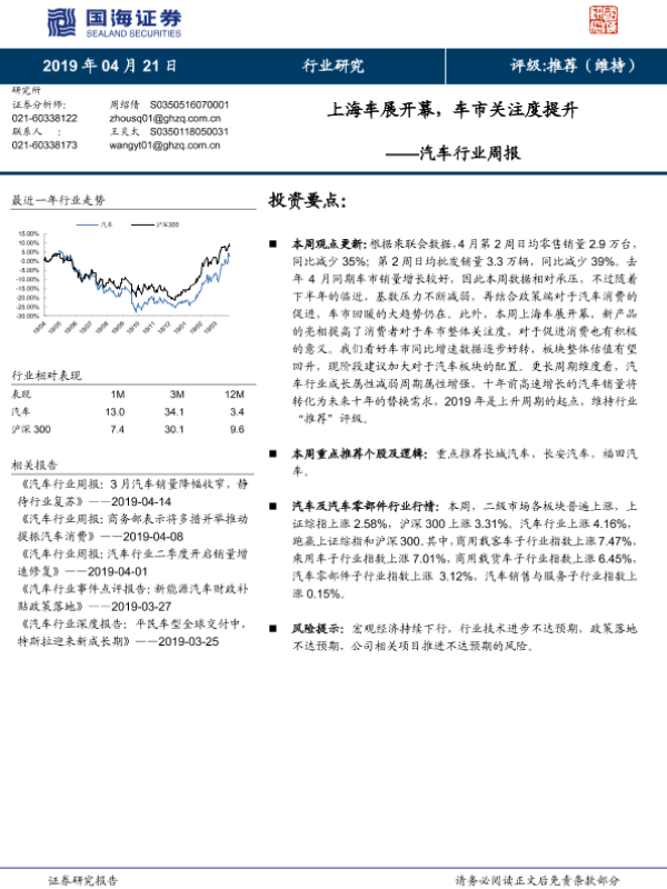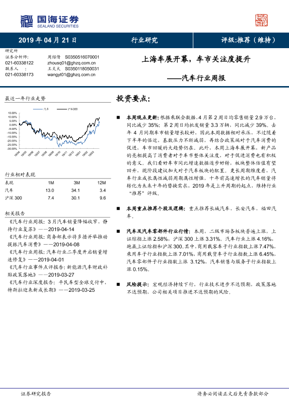 【国海证券】【20190421】20190421-国海证券-汽车行业周报:上海车展开幕,车市关注度提升-26页