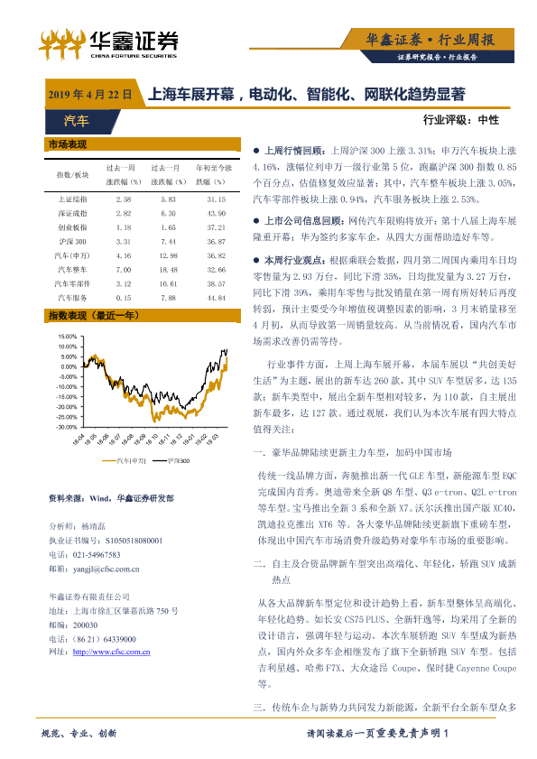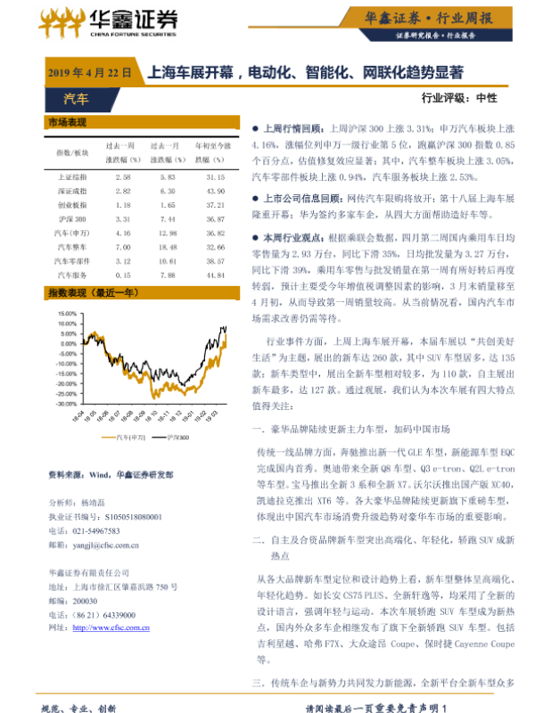 【华鑫证券】【20190422】20190422-华鑫证券-汽车行业周报:上海车展开幕,电动化、智能化、网联化趋势显著-20页