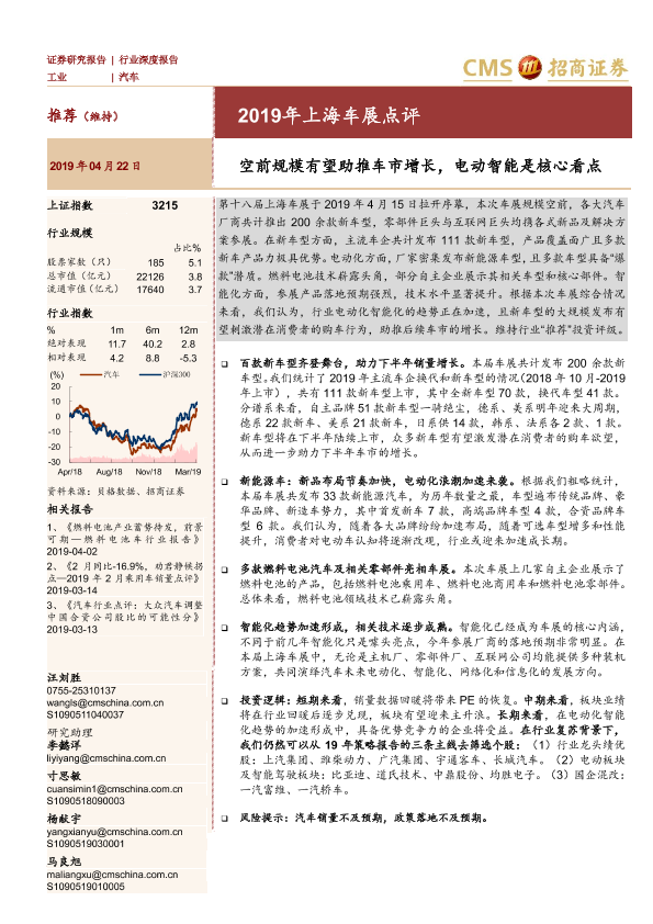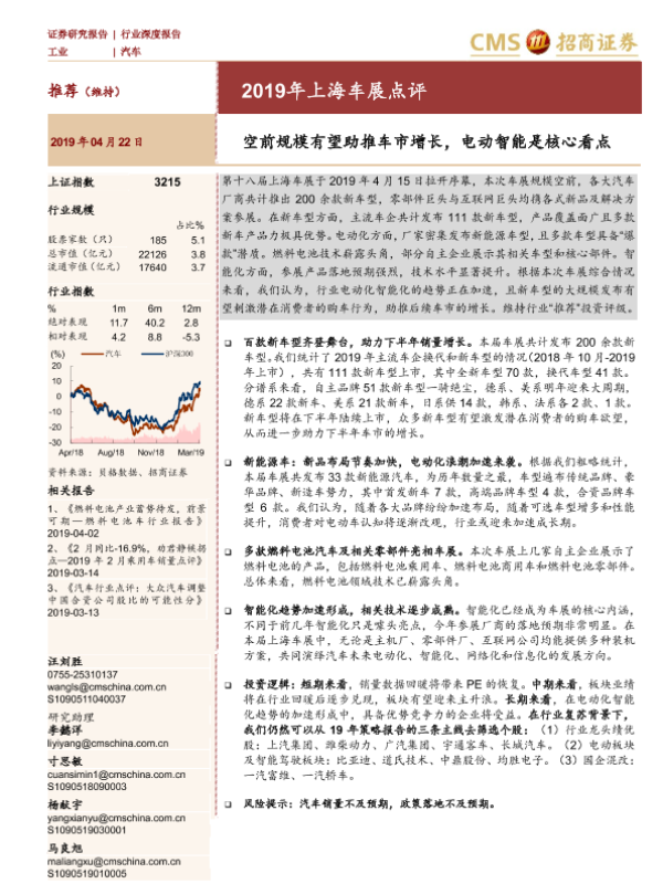 【海通证券】【20190422】2019年上海车展点评:空前规模有望助推车市增长,电动智能是核心看点-23页