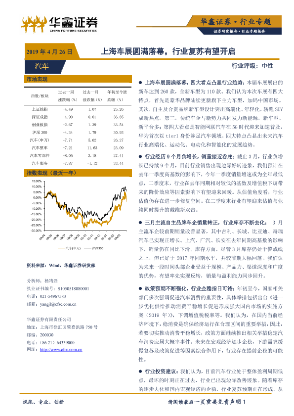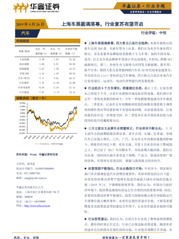 【华鑫证券】【20190426】20190426-华鑫证券-汽车行业:上海车展圆满落幕,行业复苏有望开启-15页