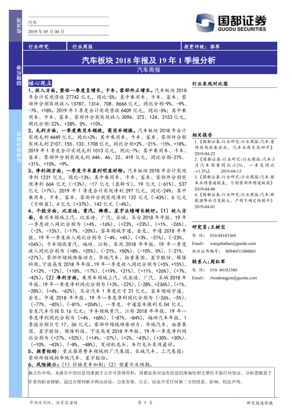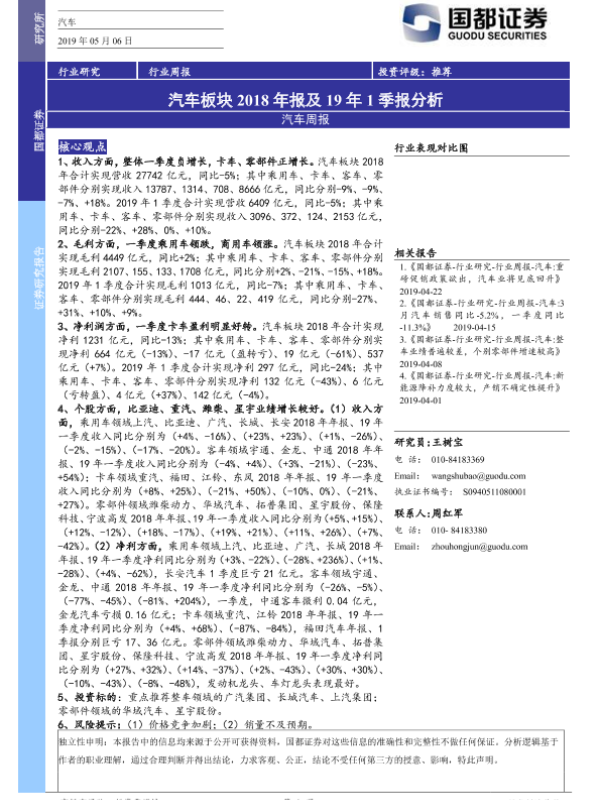【国都证券】【20190506】汽车板块2018年报及19年1季报分析-2页
