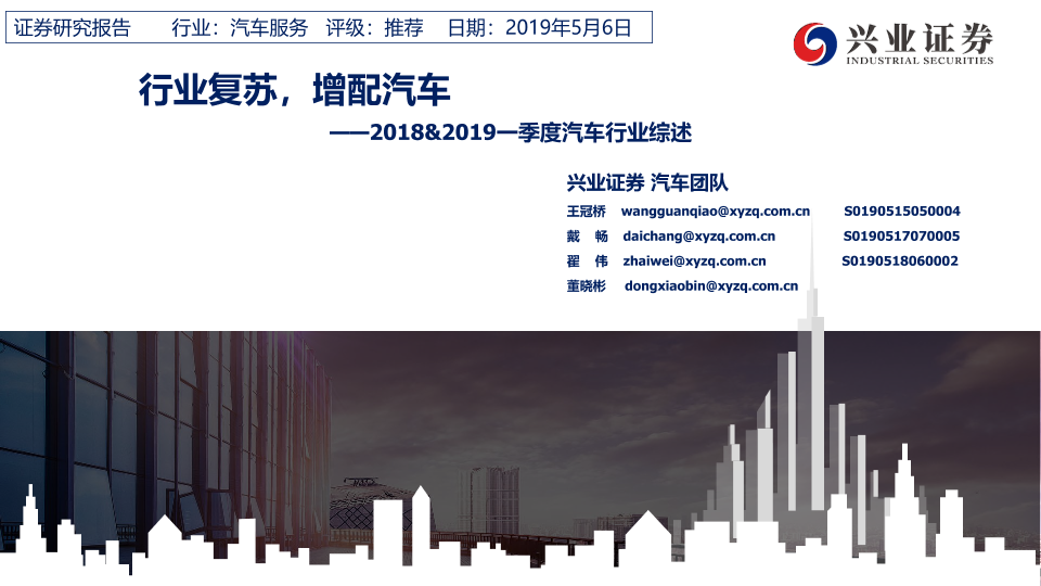 【兴业证券】【20190506】2018&2019一季度汽车行业综述:行业复苏,增配汽车-35页
