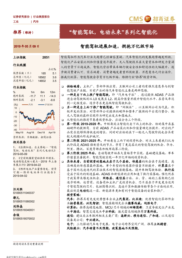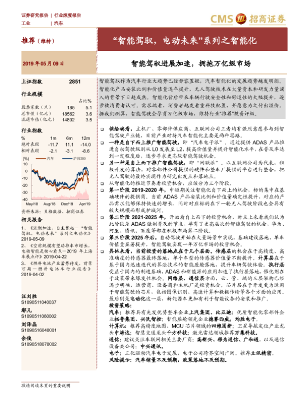 【海通证券】【20190509】汽车行业深度报告:“智能驾驭,电动未来”系列之智能化-智能驾驭进展加速,拥抱万亿级市场-43页