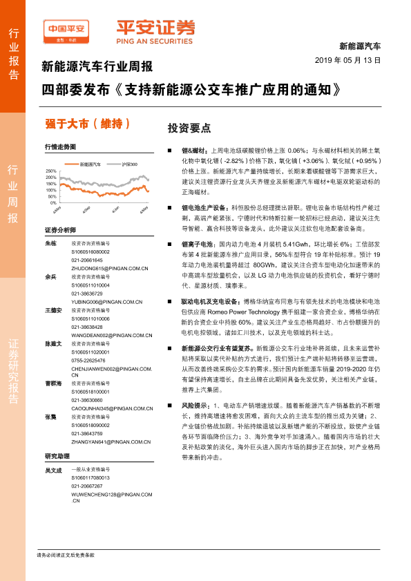 【平安证券】【20190513】20190513-平安证券-新能源汽车行业周报:四部委发布《支持新能源公交车推广应用的通知》-9页