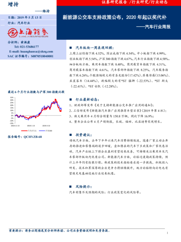 【上海证券】【20190513】20190513-上海证券-汽车行业周报:新能源公交车支持政策公布,2020年起以奖代补-7页