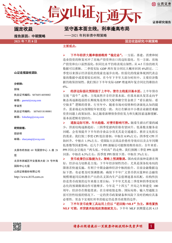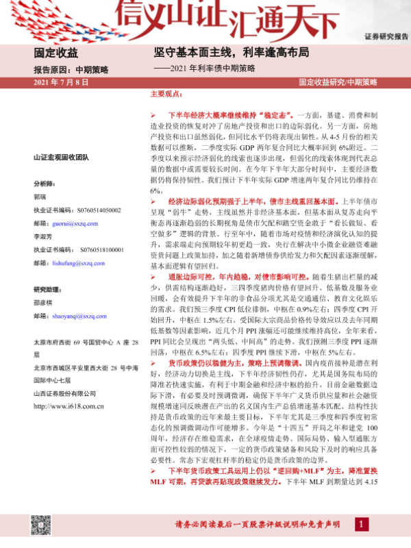 【山西证券】【20210708】2021年利率债中期策略:坚守基本面主线,利率逢高布局-49页