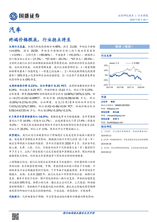 【国盛证券】【20190520】20190520-国盛证券-汽车行业周报:终端价格探底,行业拐点将至-15页