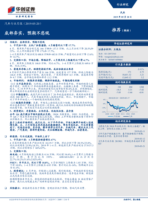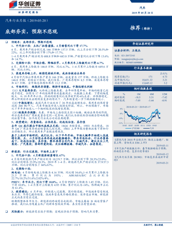 【华创证券】【20190520】20190520-华创证券-汽车行业月报:底部夯实,预期不悲观-13页