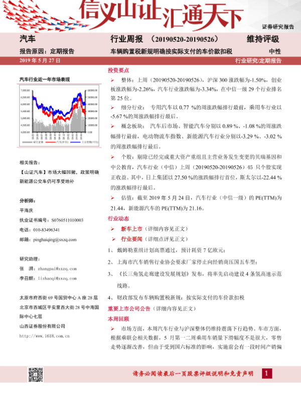 【山西证券】【20190527】20190527-山西证券-汽车行业周报:车辆购置税新规明确按实际支付的车价款扣税-16页
