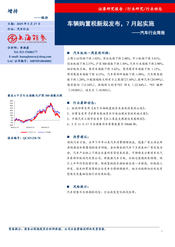 【上海证券】【20190527】20190527-上海证券-汽车行业周报:车辆购置税新规发布,7月起实施-7页