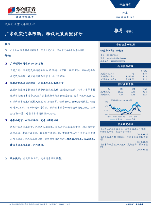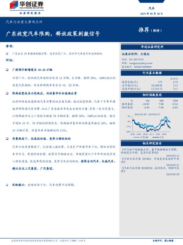【华创证券】【20190528】汽车行业重大事项点评:广东放宽汽车限购,释放政策刺激信号-3页