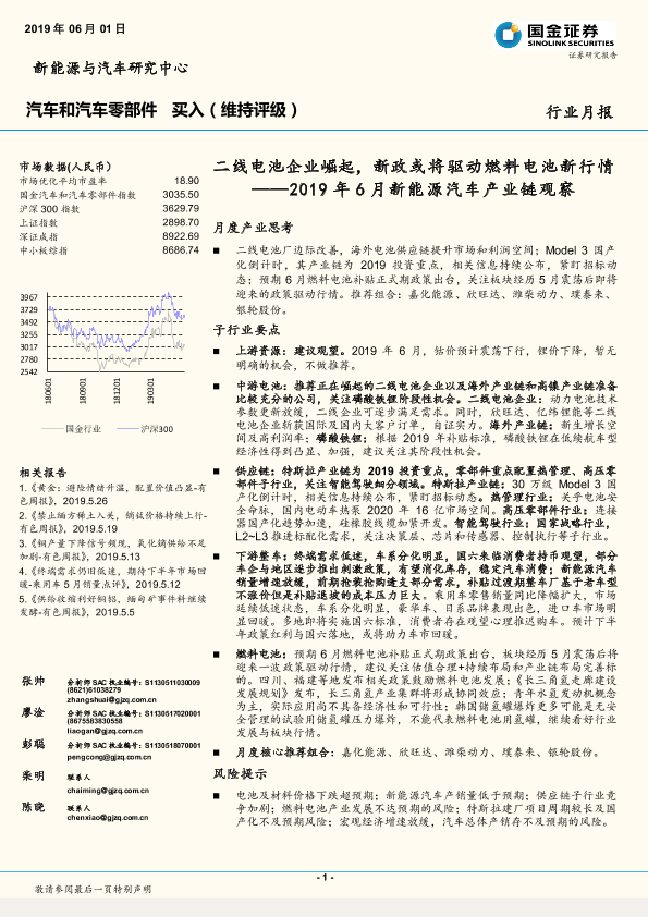 【国金证券】【20190601】汽车和汽车零部件2019年6月新能源汽车产业链观察:二线电池企业崛起,新政或将驱动燃料电池新行情-37页