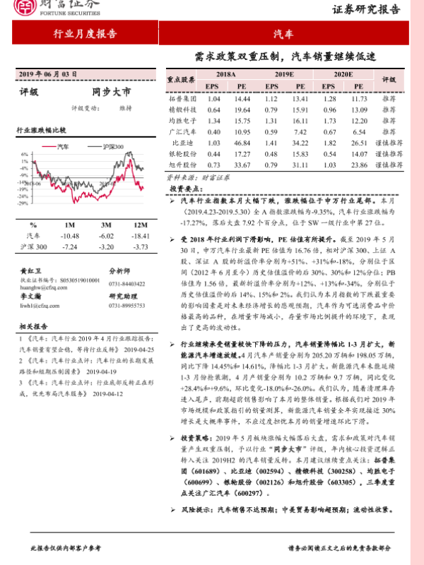 【财信证券】【20190603】需求政策双重压制,汽车销量继续低迷-13页