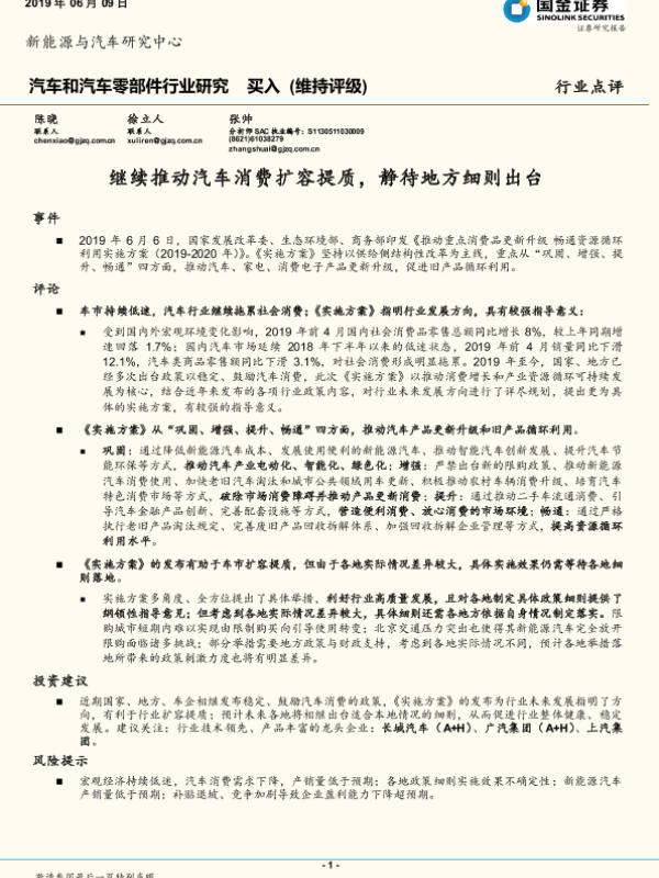 【国金证券】【20190609】继续推动汽车消费扩容提质,静待地方细则出台-10页