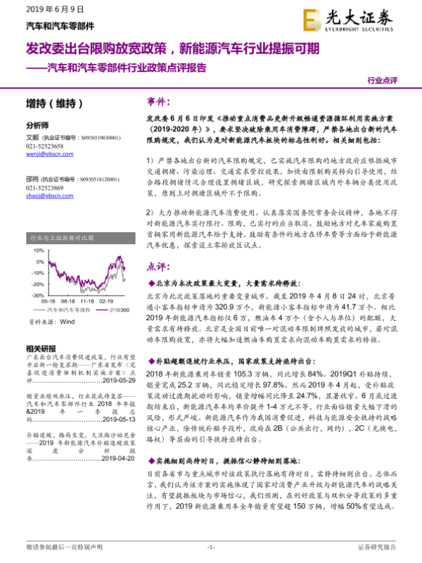 【光大证券】【20190609】汽车和汽车零部件行业政策点评报告:发改委出台限购放宽政策,新能源汽车行业提振可期-5页