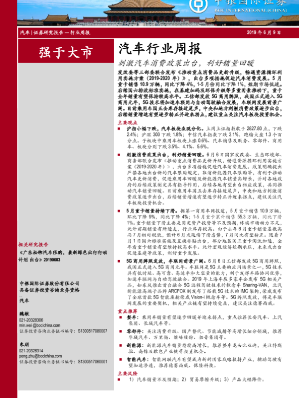 【中银证券】【20190609】20190609-中银证券-汽车行业周报:刺激汽车消费政策出台,利好销量回暖-15页