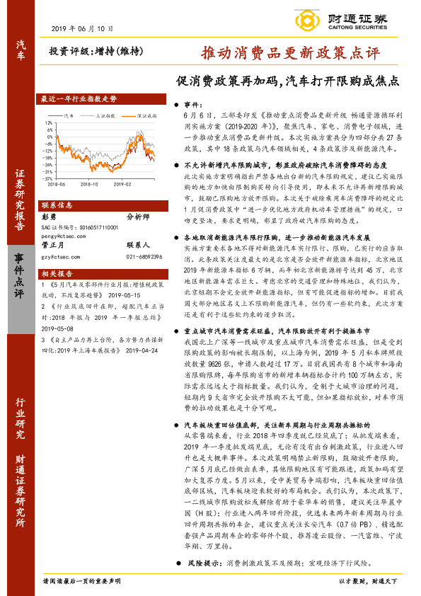 【财通证券】【20190610】推动消费品更新政策点评:促消费政策再加码,汽车打开限购成焦点-8页