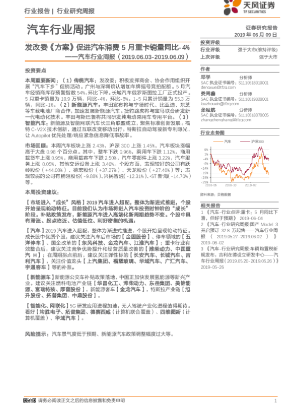 【天风证券】【20190609】发改委《方案》促进汽车消费5月重卡销量同比-4%-25页