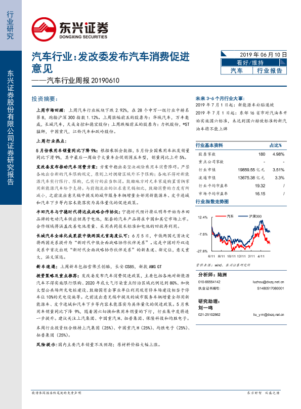 【东兴证券】【20190610】汽车行业周报:发改委发布汽车消费促进意见-15页