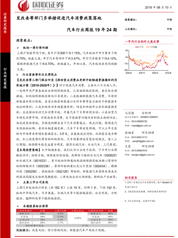 【国联证券】【20190610】发改委等部门多举措促进汽车消费政策落地-15页