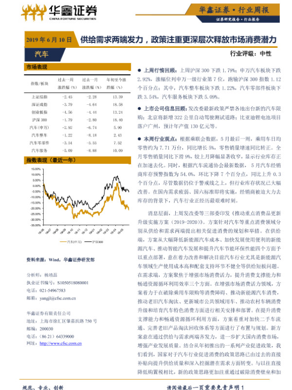 【华鑫证券】【20190610】20190610-华鑫证券-汽车行业周报:供给需求两端发力,政策注重更深层次释放市场消费潜力-18页