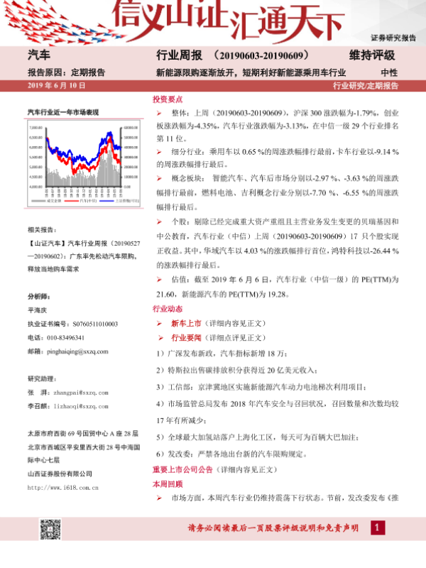 【山西证券】【20190610】20190610-山西证券-汽车行业周报:新能源限购逐渐放开,短期利好新能源乘用车行业-14页
