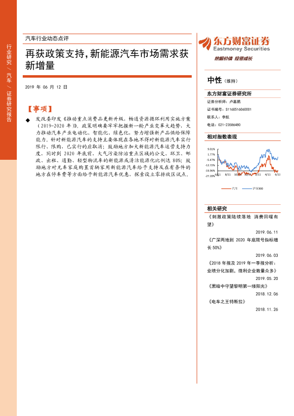 【东方财富证券】【20190612】汽车行业动态点评:再获政策支持,新能源汽车市场需求获新增量-3页