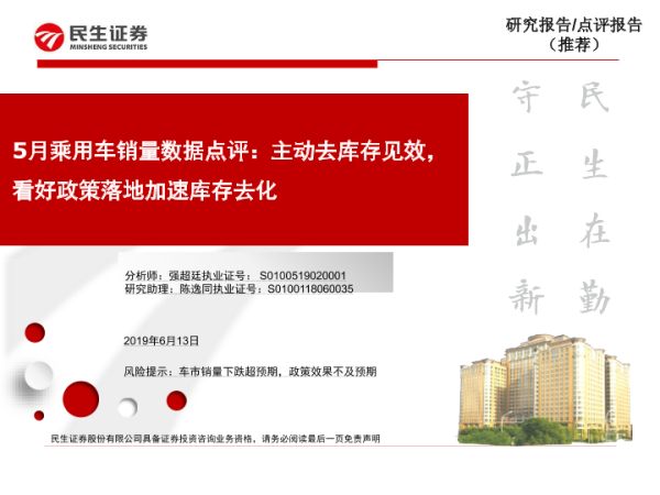 【民生证券】【20190613】5月乘用车销量数据点评:主动去库存见效,看好政策落地加速库存去化-5页