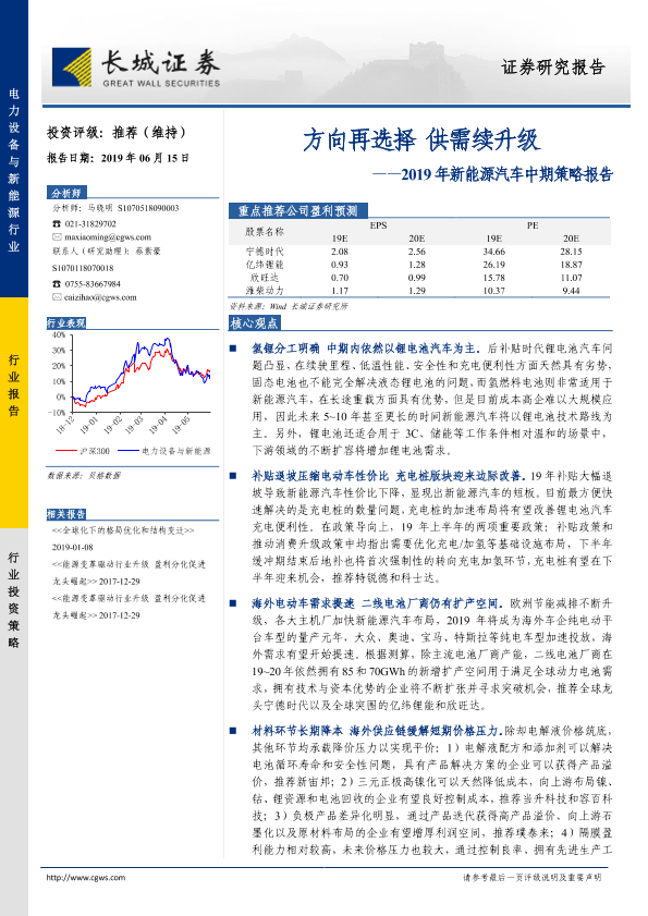 【长城证券】【20190615】2019年新能源汽车中期策略报告:方向再选择供需续升级-27页