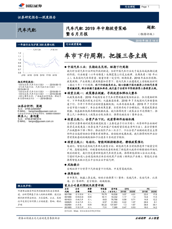 【国信证券】【20190614】汽车汽配2019年中期投资策略暨6月月报:车市下行周期,把握三条主线-41页