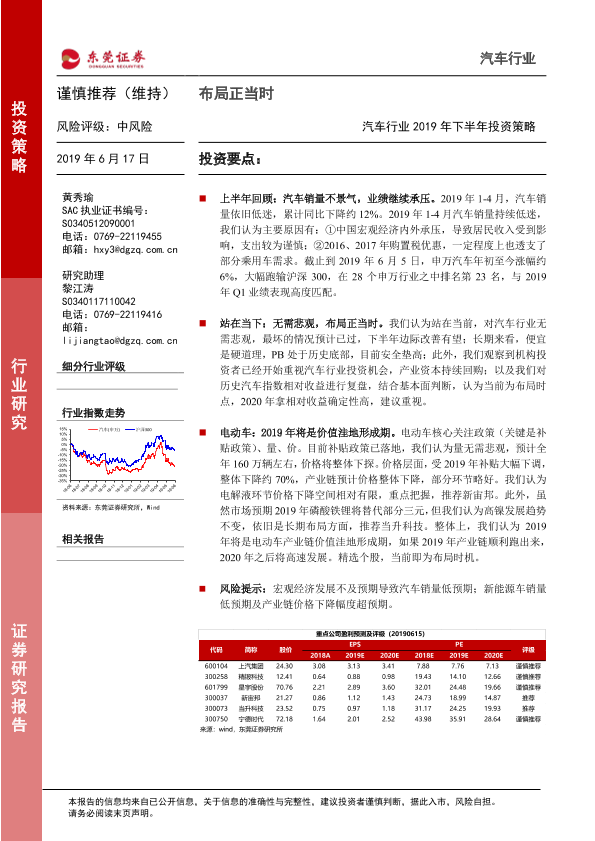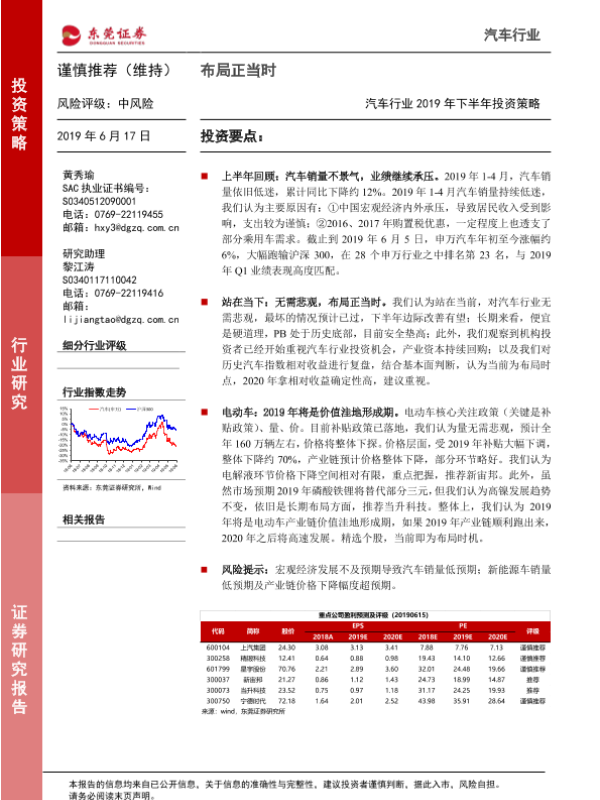 【东莞证券】【20190617】汽车行业2019年下半年投资策略:布局正当时-11页