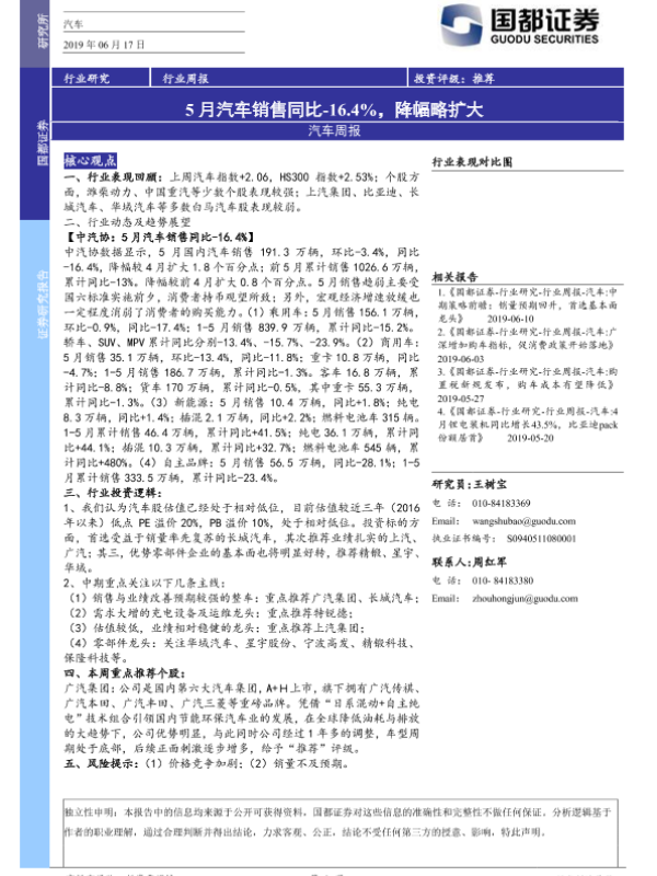 【国都证券】【20190617】汽车周报:5月汽车销售同比-16.4%,降幅略扩大-2页